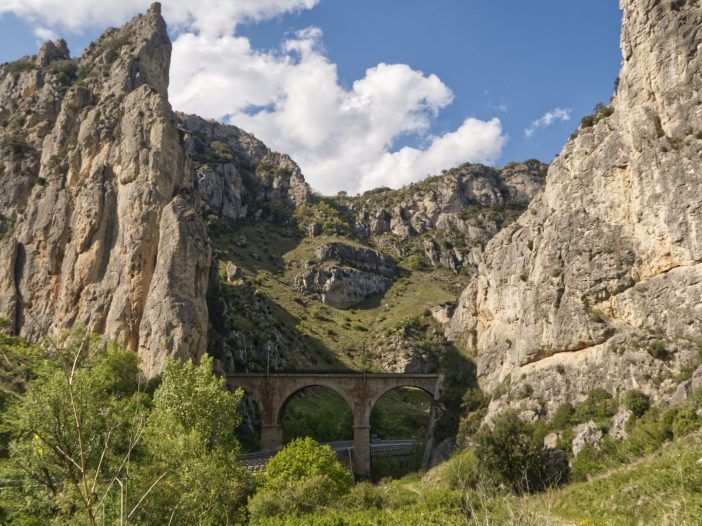Tres vistas distintas del desfiladero de Pancorbo: desde abajo, por dentro y desde arriba.