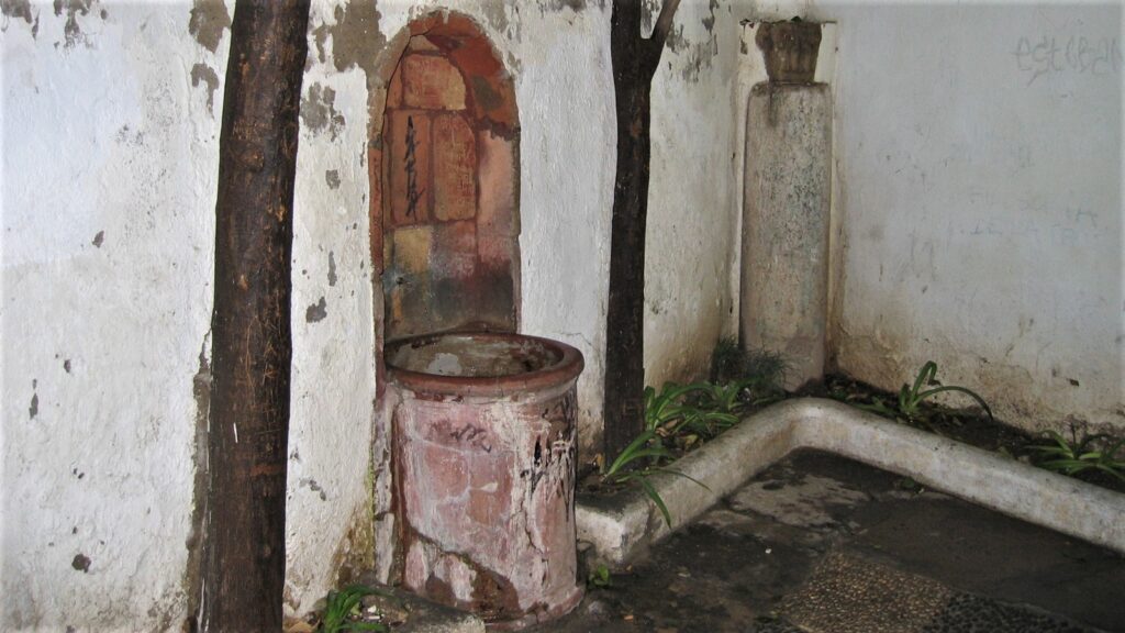 Este edificio, quizá el más representativo de este tipo de construcciones que aún se conserva en estado casi original y que merece una visita, contiene en sus doce patios varias fuentes, entre ellas esta de su patio de entrada.