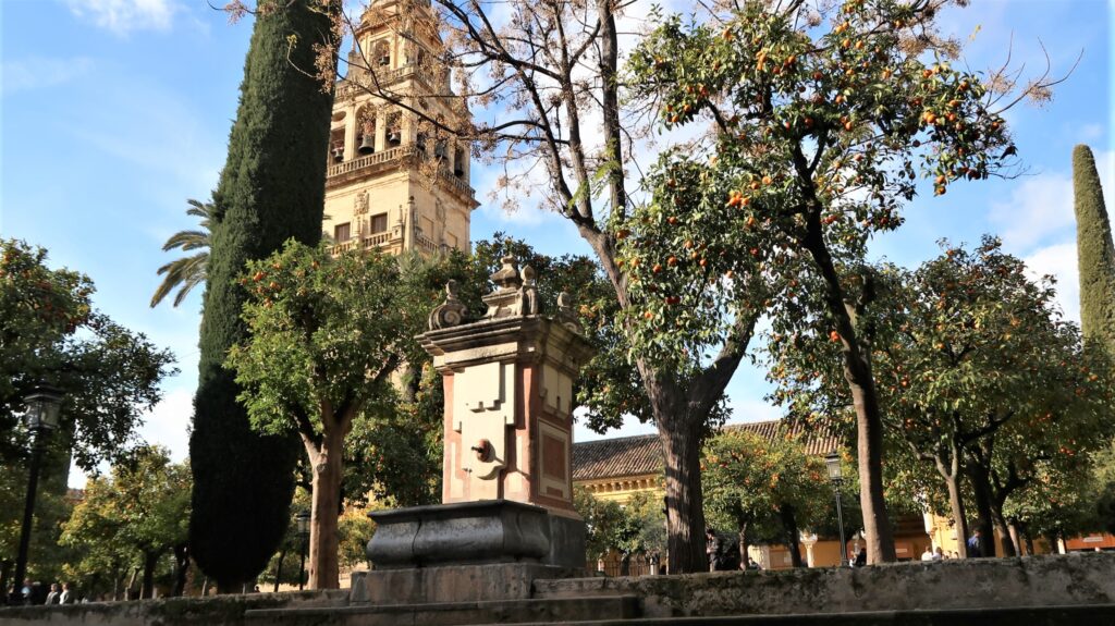La Mezquita es un entorno históricamente muy relacionado con el agua en Córdoba, ya que fue destino de una de las conducciones más antiguas y en la actualidad mantiene hasta siete fuentes, cinco en el interior del Patio de los Naranjos y dos adosadas a sus muros.