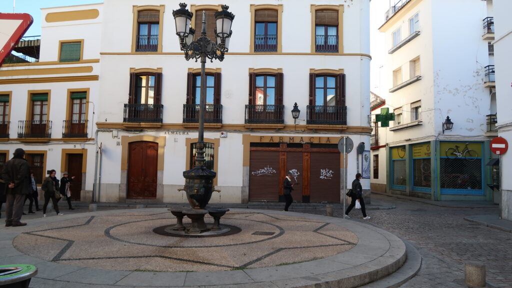 Es en esas pequeñas plazuelas, ajardinadas o no, que jalonan la geografía urbana cordobesa donde más resalta una fuente, como esta con el fondo de la casa señorial renacentista del siglo XVI, que merece mención especial por su antigüedad e historia ya que data de 1664 y fue trasladada desde la Plaza del Salvador en 1863 siendo alcalde D. Carlos Ramírez de Arellano…