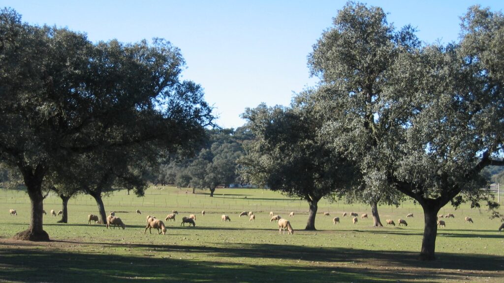 que atraviesa primero lo que fue un auténtico bosque de robles, encinas, alcornoques y matorral hasta finales del siglo XX y principios del XXI, cuando la plaga conocida como «la seca» se propagó por la Sierra Norte y acabó en pocos años con la mayor parte de esas especies, dejando una visión apocalíptica de lo que puede ser el futuro con el cambio climático.